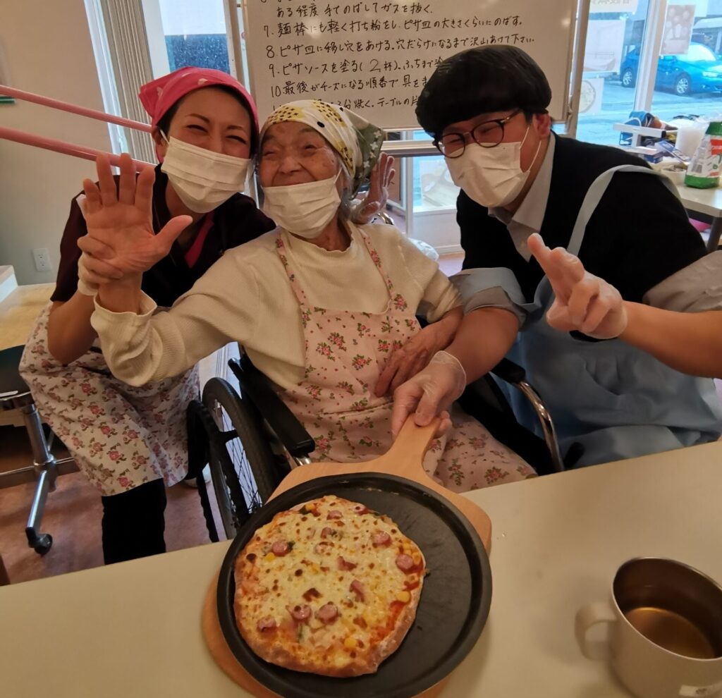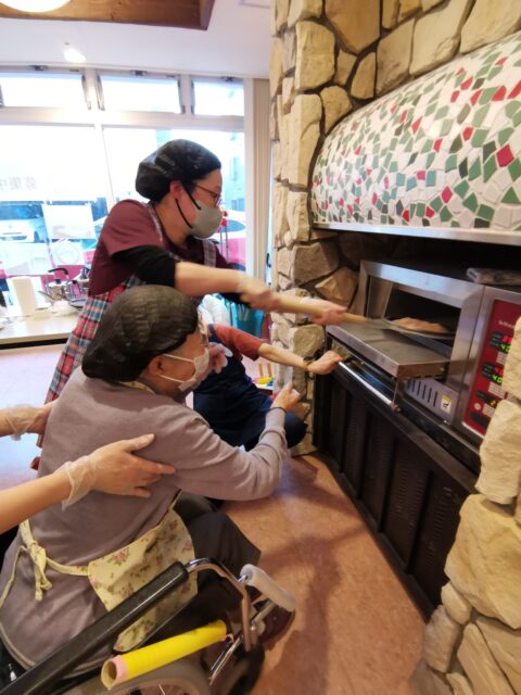 今回は入所者様と一緒に「生地をこねる」「具材を選ぶ」「窯で焼き上げる」といった工程を楽しみながら、